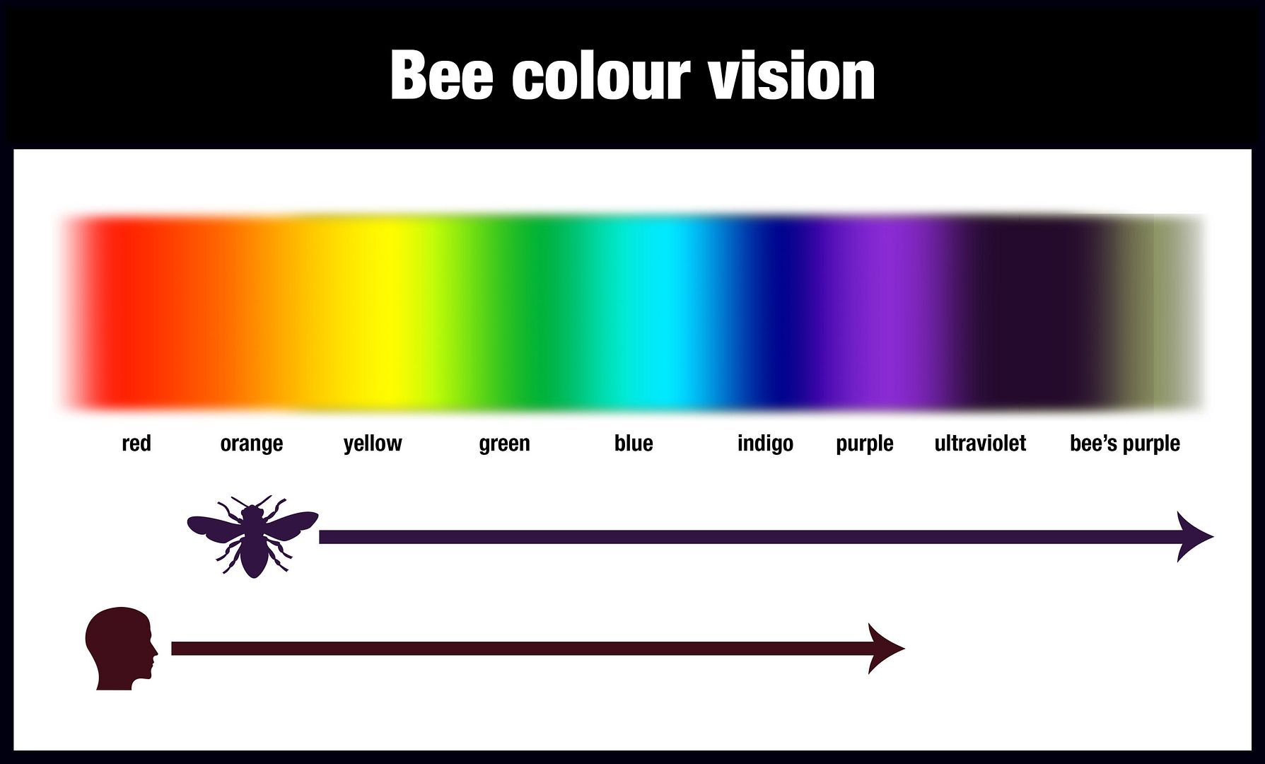 Τα έντομα έχουν περιορισμένη χρωματική όραση (του ορατού φάσματος) μόνο όταν η συχνότητα απόκρισης βρίσκεται εντός του εύρους UV.